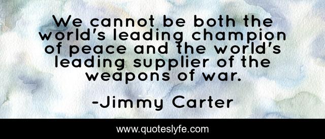 This page presents the quote "We cannot be both the world's leading champion of peace and the world's leading supplier of the weapons of war.". Author of this quote is Jimmy Carter. This quote is about jimmy-carter, president, peace, war,.