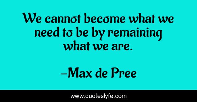 This page presents the quote "We cannot become what we need to be by remaining what we are.". Author of this quote is Max de Pree. This quote is about need, become, cannot,.