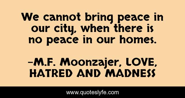 "M.F. Moonzajer, LOVE, HATRED AND MADNESS Quotes." Quoteslyfe.com, 2026. Tue. 13 Jan. 2026. <https://www.quoteslyfe.com/quote/We-cannot-bring-peace-in-our-city-182722>.