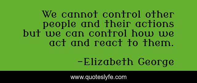 This page presents the quote "We cannot control other people and their actions but we can control how we act and react to them.". Author of this quote is Elizabeth George. This quote is about control, reaction, trails, elizabeth-george, actions, god, christians,.