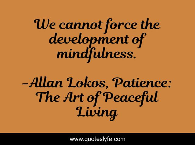 "Allan Lokos, Patience: The Art of Peaceful Living Quotes." Quoteslyfe.com, 2025. Fri. 05 Dec. 2025. <https://www.quoteslyfe.com/quote/We-cannot-force-the-development-of-mindfulness-185780>.
