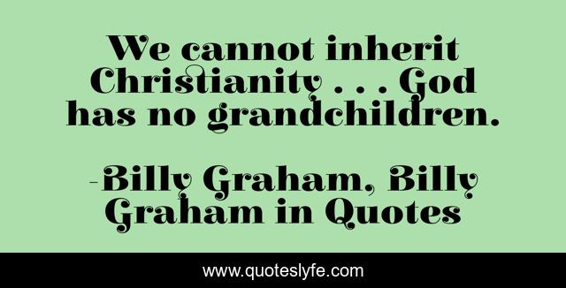 "Billy Graham, Billy Graham in Quotes Quotes." Quoteslyfe.com, 2025. Sun. 14 Dec. 2025. <https://www.quoteslyfe.com/quote/We-cannot-inherit-Christianity-God-has-no-62305>.