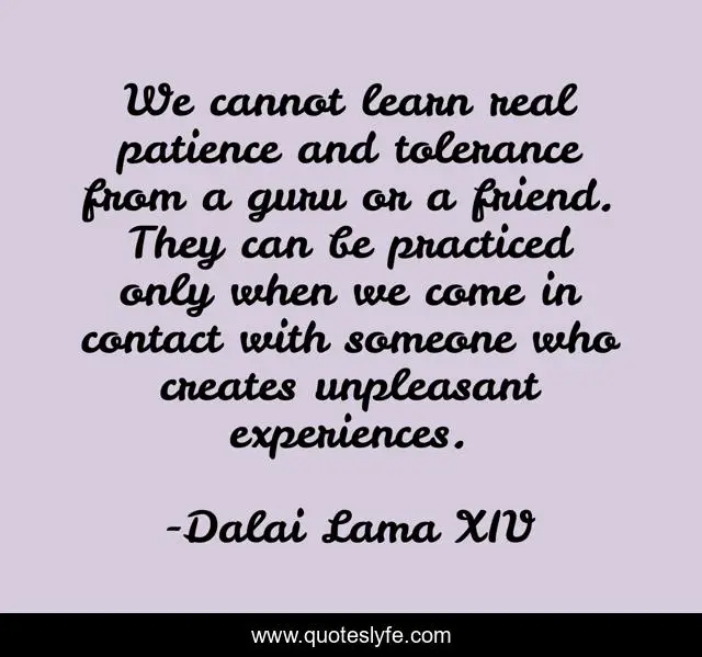 "Dalai Lama XIV Quotes." Quoteslyfe.com, 2025. Fri. 12 Dec. 2025. <https://www.quoteslyfe.com/quote/We-cannot-learn-real-patience-and-tolerance-193064>.