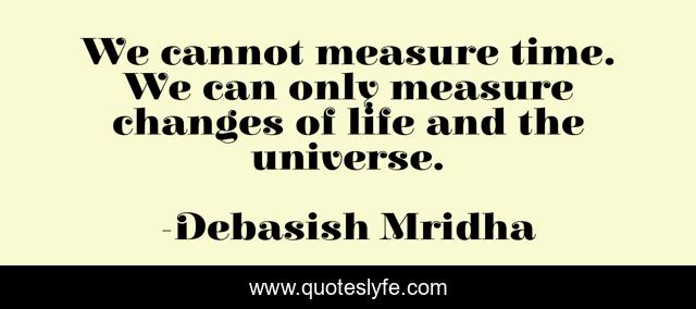 This page presents the quote "We cannot measure time. We can only measure changes of life and the universe.". Author of this quote is Debasish Mridha. This quote is about changes-of-life, universe, philosophy, debasish-mridha, measure-time, quotes, inspirational, time, enthusiasm,.