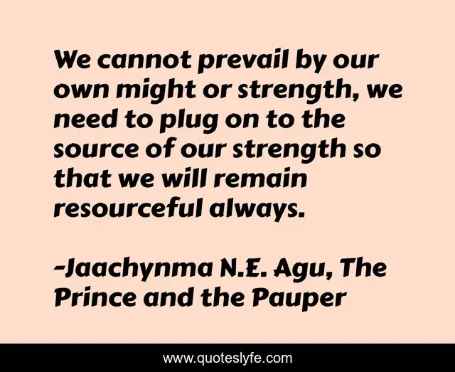 "Jaachynma N.E. Agu, The Prince and the Pauper Quotes." Quoteslyfe.com, 2025. Fri. 05 Dec. 2025. <https://www.quoteslyfe.com/quote/We-cannot-prevail-by-our-own-might-28841>.