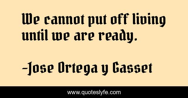 This page presents the quote "We cannot put off living until we are ready.". Author of this quote is Jose Ortega y Gasset. This quote is about ready, living, off,.
