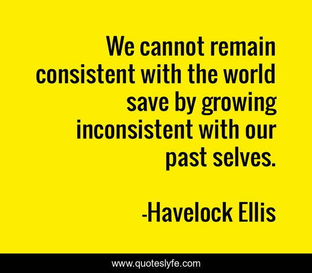 This page presents the quote "We cannot remain consistent with the world save by growing inconsistent with our past selves.". Author of this quote is Havelock Ellis. This quote is about positive, confidence, creating, change,.