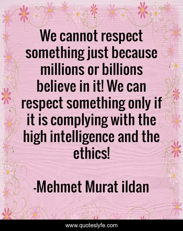 This page presents the quote "We cannot respect something just because millions or billions believe in it! We can respect something only if it is complying with the high intelligence and the ethics!". Author of this quote is Mehmet Murat ildan. .
