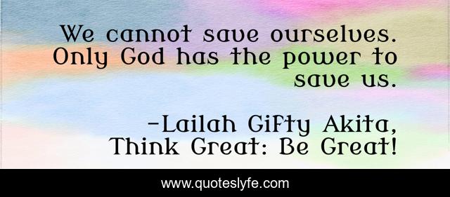 "Lailah Gifty Akita, Think Great: Be Great! Quotes." Quoteslyfe.com, 2025. Fri. 05 Dec. 2025. <https://www.quoteslyfe.com/quote/We-cannot-save-ourselves-Only-God-has-85080>.