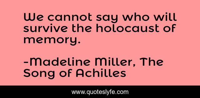 This page presents the quote "We cannot say who will survive the holocaust of memory.". Author of this quote is Madeline Miller, The Song of Achilles. This quote is about achilles, tragedy, patroclus,.