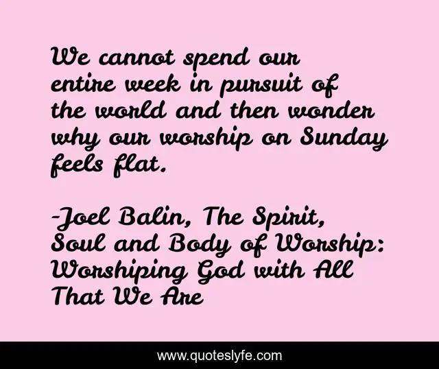 "Joel Balin, The Spirit, Soul and Body of Worship: Worshiping God with All That We Are Quotes." Quoteslyfe.com, 2025. Fri. 05 Dec. 2025. <https://www.quoteslyfe.com/quote/We-cannot-spend-our-entire-week-in-194009>.