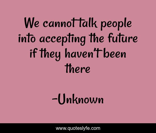 "Unknown Quotes." Quoteslyfe.com, 2025. Fri. 05 Dec. 2025. <https://www.quoteslyfe.com/quote/We-cannot-talk-people-into-accepting-the-51468>.