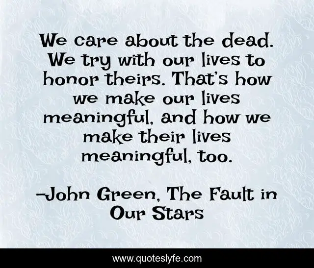 "John Green, The Fault in Our Stars Quotes." Quoteslyfe.com, 2025. Mon. 08 Dec. 2025. <https://www.quoteslyfe.com/quote/We-care-about-the-dead-We-try-225084>.