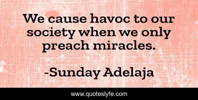 This page presents the quote "We cause havoc to our society when we only preach miracles.". Author of this quote is Sunday Adelaja. This quote is about miracles, society, havoc, preaching,.