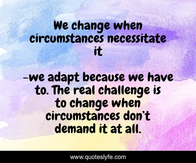 "we adapt because we have to. The real challenge is to change when circumstances don’t demand it at all. Quotes." Quoteslyfe.com, 2025. Sat. 06 Dec. 2025. <https://www.quoteslyfe.com/quote/We-change-when-circumstances-necessitate-it-189396>.