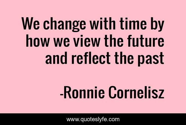 This page presents the quote "We change with time by how we view the future and reflect the past". Author of this quote is Ronnie Cornelisz. This quote is about past, future, viewpoint-reflect, time,.