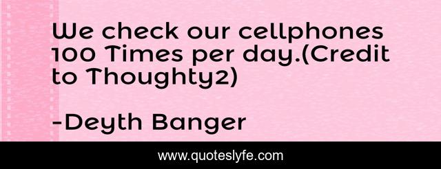 This page presents the quote "We check our cellphones 100 Times per day.(Credit to Thoughty2)". Author of this quote is Deyth Banger. This quote is about hundread, check, per, times, day, out,.