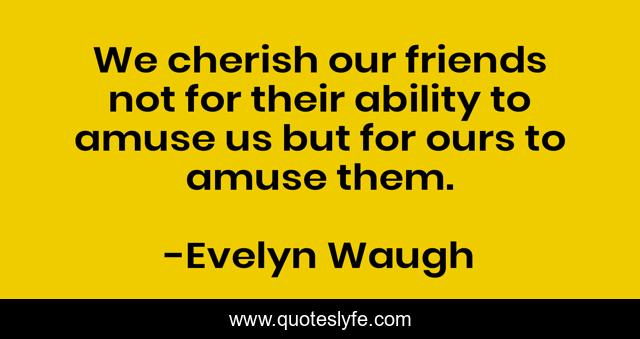 This page presents the quote "We cherish our friends not for their ability to amuse us but for ours to amuse them.". Author of this quote is Evelyn Waugh. .