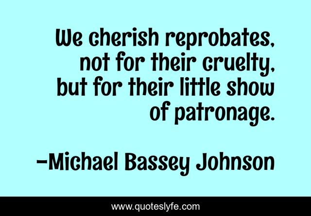 "Michael Bassey Johnson Quotes." Quoteslyfe.com, 2025. Sat. 06 Dec. 2025. <https://www.quoteslyfe.com/quote/We-cherish-reprobates-not-for-their-cruelty-176308>.