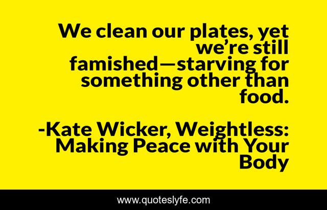 "Kate Wicker, Weightless: Making Peace with Your Body Quotes." Quoteslyfe.com, 2025. Sat. 06 Dec. 2025. <https://www.quoteslyfe.com/quote/We-clean-our-plates-yet-we-re-239148>.