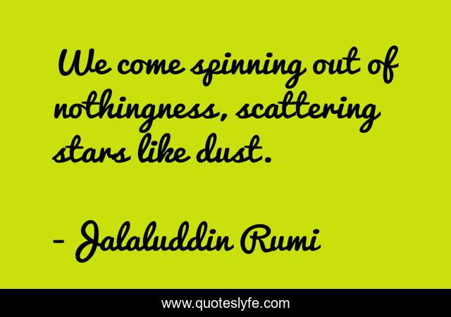 This page presents the quote "We come spinning out of nothingness, scattering stars like dust.". Author of this quote is Jalaluddin Rumi. This quote is about enthusiasm, inspirational,.
