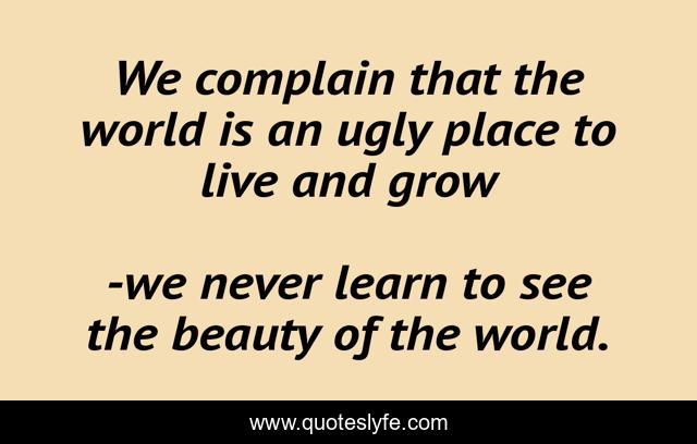 This page presents the quote "We complain that the world is an ugly place to live and grow". Author of this quote is we never learn to see the beauty of the world.. .