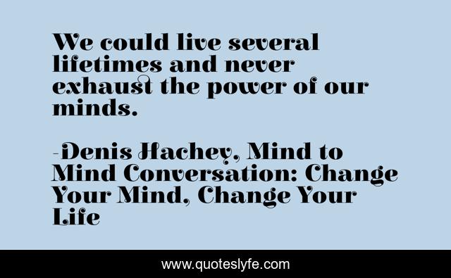 This page presents the quote "We could live several lifetimes and never exhaust the power of our minds.". Author of this quote is Denis Hachey, Mind to Mind Conversation: Change Your Mind, Change Your Life. This quote is about power-of-the-mind, change, power-of-thoughts,.