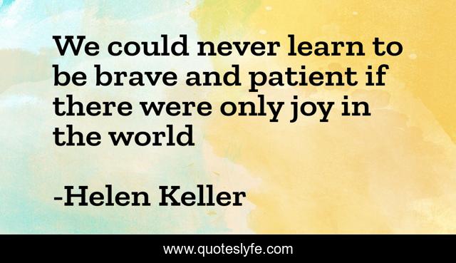 This page presents the quote "We could never learn to be brave and patient if there were only joy in the world". Author of this quote is Helen Keller. This quote is about enthusiasm, adversity, inspirational, personal-growth,.