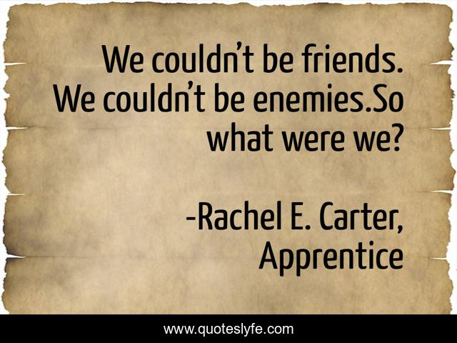 "Rachel E. Carter, Apprentice Quotes." Quoteslyfe.com, 2025. Mon. 08 Dec. 2025. <https://www.quoteslyfe.com/quote/We-couldn-t-be-friends-We-couldn-18702>.