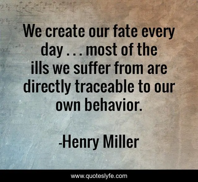 This page presents the quote "We create our fate every day . . . most of the ills we suffer from are directly traceable to our own behavior.". Author of this quote is Henry Miller. This quote is about behavior, fate,.