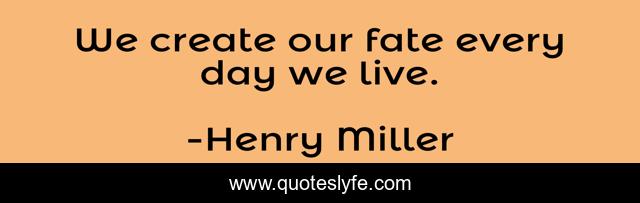 This page presents the quote "We create our fate every day we live.". Author of this quote is Henry Miller. This quote is about day, one,.