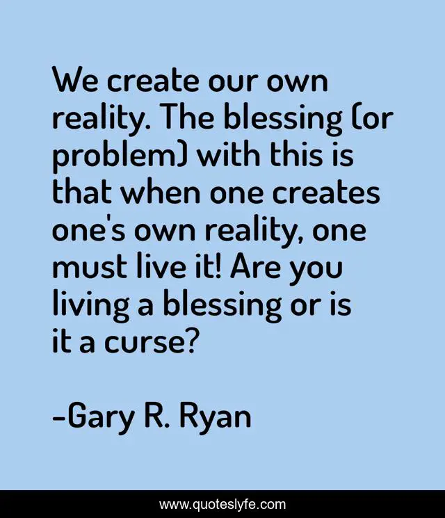 "Gary R. Ryan Quotes." Quoteslyfe.com, 2025. Fri. 05 Dec. 2025. <https://www.quoteslyfe.com/quote/We-create-our-own-reality-The-blessing-108853>.