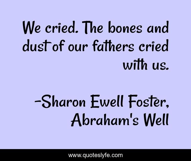 "Sharon Ewell Foster, Abraham's Well Quotes." Quoteslyfe.com, 2025. Sat. 06 Dec. 2025. <https://www.quoteslyfe.com/quote/We-cried-The-bones-and-dust-of-123592>.