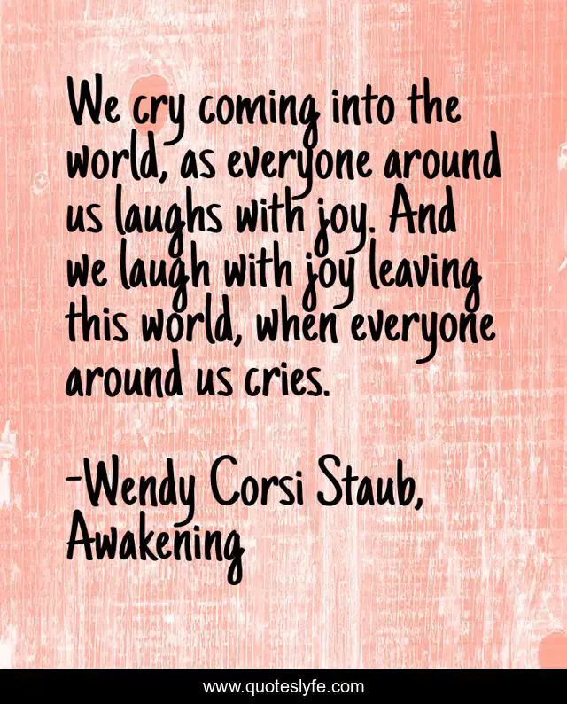 This page presents the quote "We cry coming into the world, as everyone around us laughs with joy. And we laugh with joy leaving this world, when everyone around us cries.". Author of this quote is Wendy Corsi Staub, Awakening. This quote is about life, death, birth,.