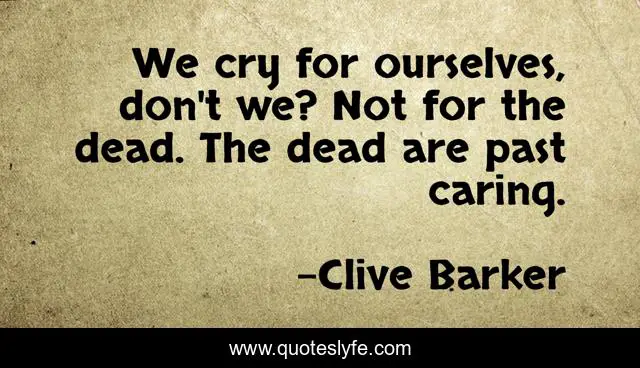 This page presents the quote "We cry for ourselves, don't we? Not for the dead. The dead are past caring.". Author of this quote is Clive Barker. .