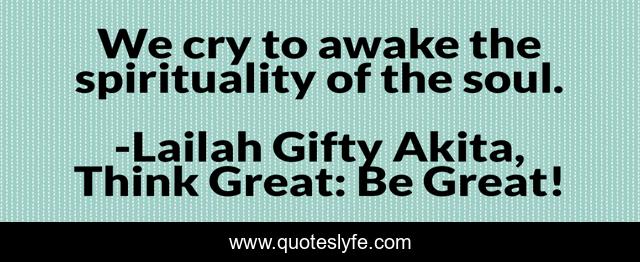 "Lailah Gifty Akita, Think Great: Be Great! Quotes." Quoteslyfe.com, 2025. Mon. 08 Dec. 2025. <https://www.quoteslyfe.com/quote/We-cry-to-awake-the-spirituality-of-63740>.