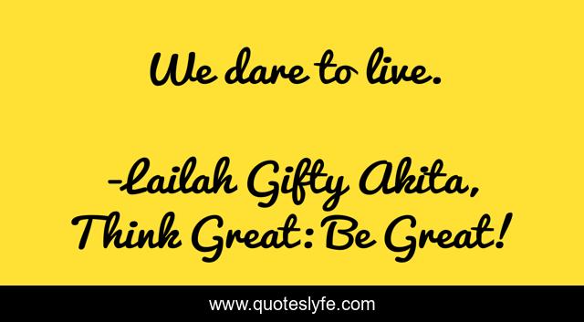 "Lailah Gifty Akita, Think Great: Be Great! Quotes." Quoteslyfe.com, 2025. Sat. 06 Dec. 2025. <https://www.quoteslyfe.com/quote/We-dare-to-live-95024>.