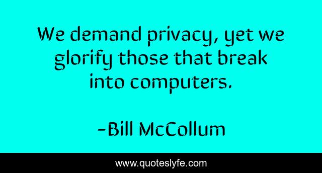 This page presents the quote "We demand privacy, yet we glorify those that break into computers.". Author of this quote is Bill McCollum. This quote is about break, privacy, demand,.