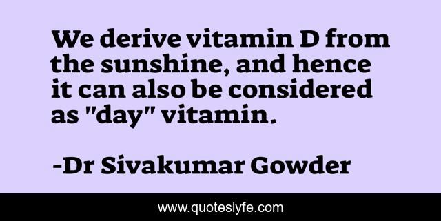 This page presents the quote "We derive vitamin D from the sunshine, and hence it can also be considered as "day" vitamin.". Author of this quote is Dr Sivakumar Gowder. .