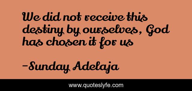 This page presents the quote "We did not receive this destiny by ourselves, God has chosen it for us". Author of this quote is Sunday Adelaja. This quote is about chosen, god, destiny, reception,.