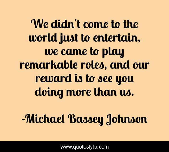 We didn't come to the world just to entertain, we came to play remarkable roles, and our reward is to see you doing more than us.