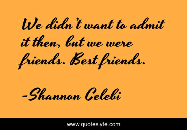 This page presents the quote "We didn’t want to admit it then, but we were friends. Best friends.". Author of this quote is Shannon Celebi. This quote is about sister, besties, family, friends, family-relationship, sisters, family-relationships, sisterhood, best-friends,.