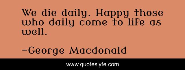 This page presents the quote "We die daily. Happy those who daily come to life as well.". Author of this quote is George Macdonald. This quote is about day, one,.