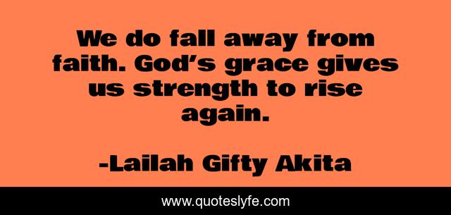 This page presents the quote "We do fall away from faith. God’s grace gives us strength to rise again.". Author of this quote is Lailah Gifty Akita. This quote is about faith, spiritual, strength, saved-souls, god, grace, christian-life, sin, never-give-up,.