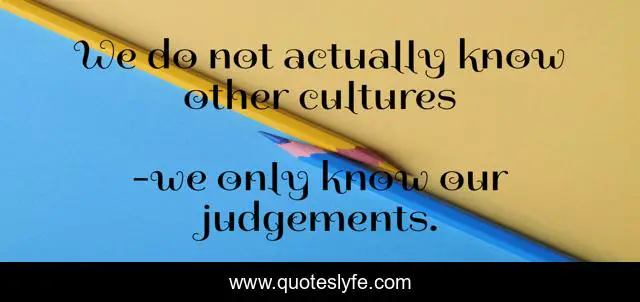 "we only know our judgements. Quotes." Quoteslyfe.com, 2025. Mon. 08 Dec. 2025. <https://www.quoteslyfe.com/quote/We-do-not-actually-know-other-cultures-238421>.