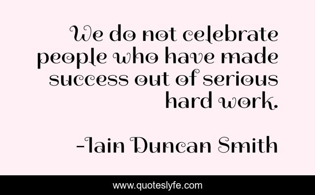 This page presents the quote "We do not celebrate people who have made success out of serious hard work.". Author of this quote is Iain Duncan Smith. This quote is about work, celebrate, hard work,.