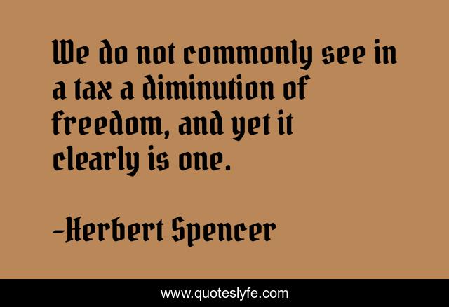 This page presents the quote "We do not commonly see in a tax a diminution of freedom, and yet it clearly is one.". Author of this quote is Herbert Spencer. This quote is about diminution, see, tax,.