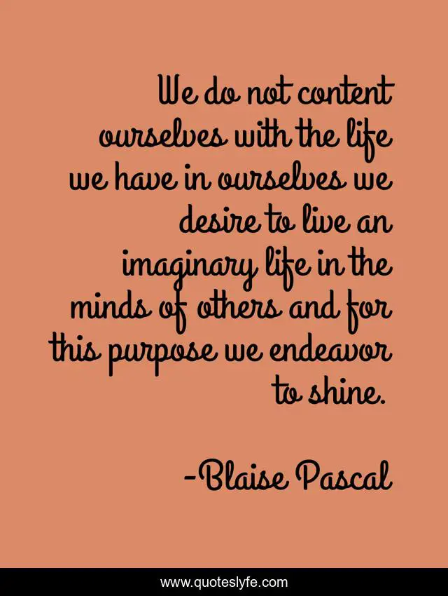 "Blaise Pascal Quotes." Quoteslyfe.com, 2025. Fri. 05 Dec. 2025. <https://www.quoteslyfe.com/quote/We-do-not-content-ourselves-with-the-271141>.