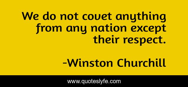 This page presents the quote "We do not covet anything from any nation except their respect.". Author of this quote is Winston Churchill. This quote is about except, anything, nation,.