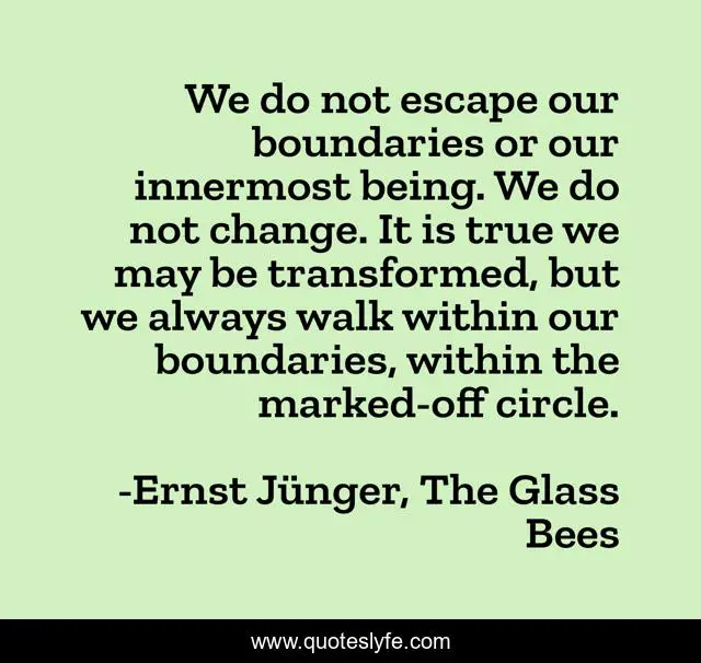 "Ernst Jünger, The Glass Bees Quotes." Quoteslyfe.com, 2025. Fri. 05 Dec. 2025. <https://www.quoteslyfe.com/quote/We-do-not-escape-our-boundaries-or-59647>.